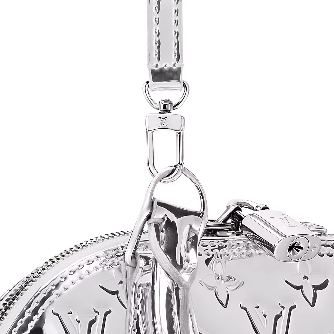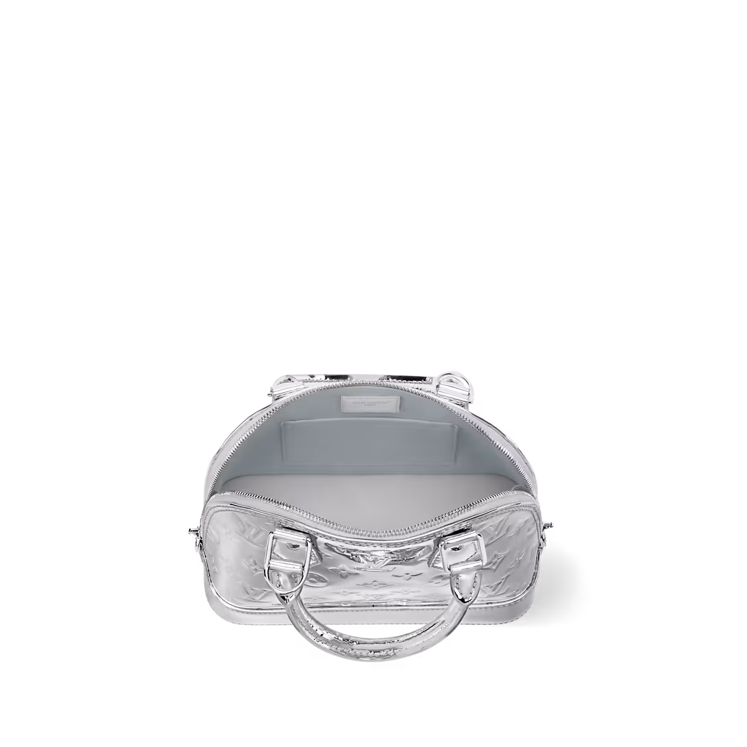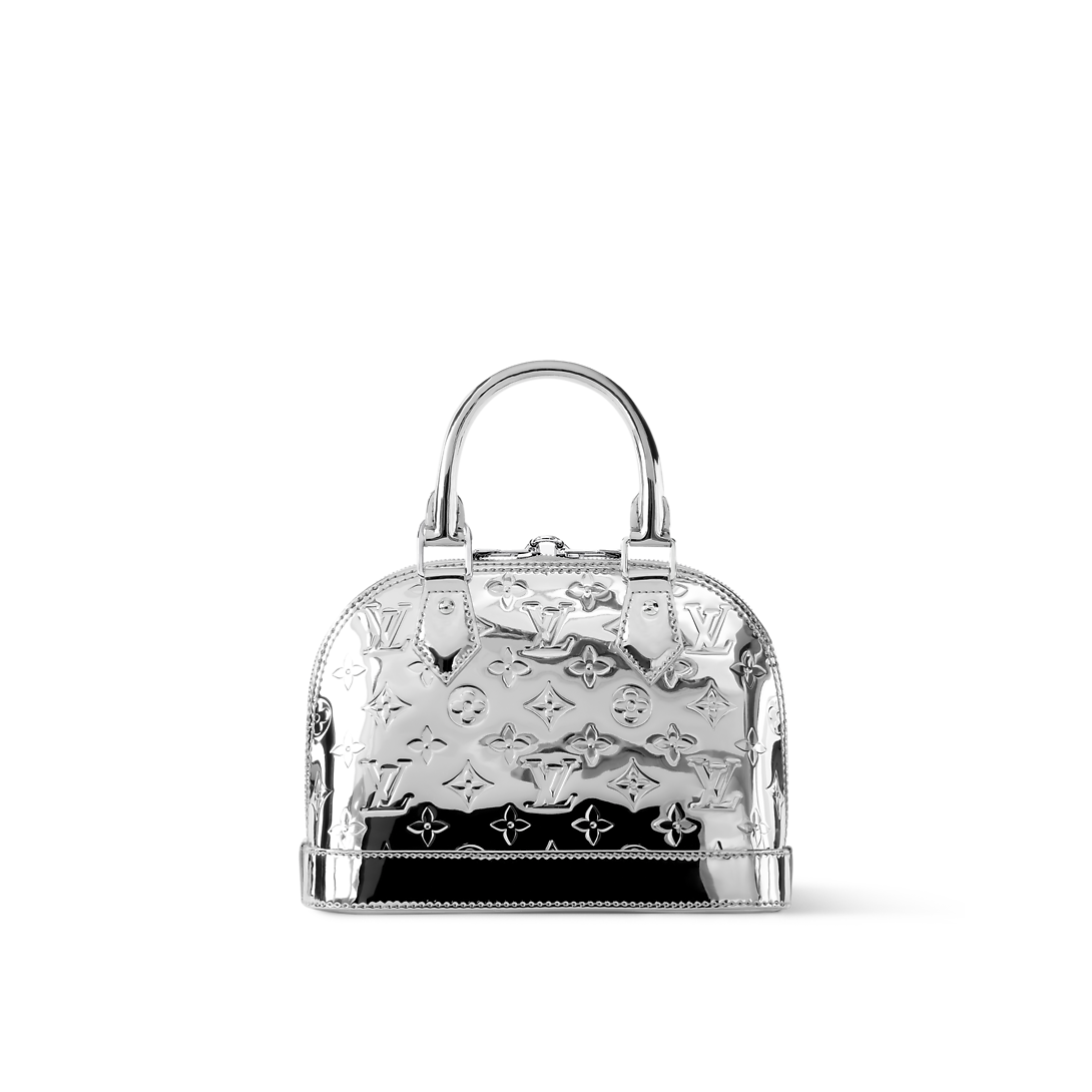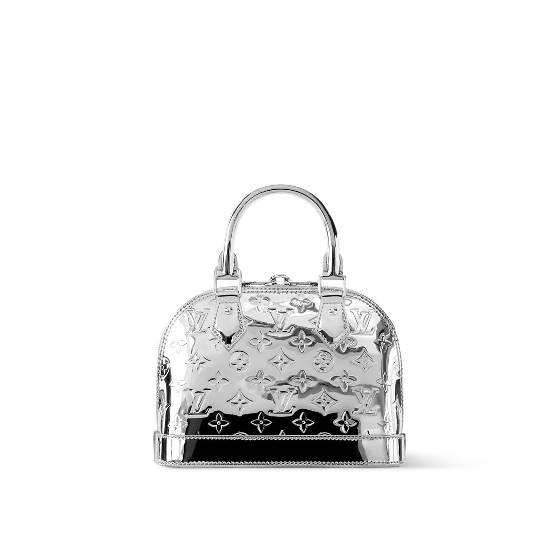 The LV Ski collection introduces technical details this season, and the Alma BB is a shining example with its light-reflecting Monogram Miroir finish. Bringing a retro-futuristic attitude to any look, it is crafted from weather-resistant canvas in an exclusive Silver colorway with matching hardware. It is adorned with a signature LV padlock, and includes a removable shoulder strap.