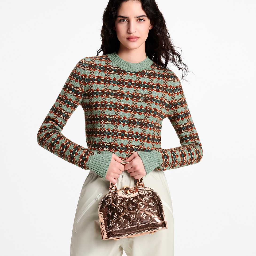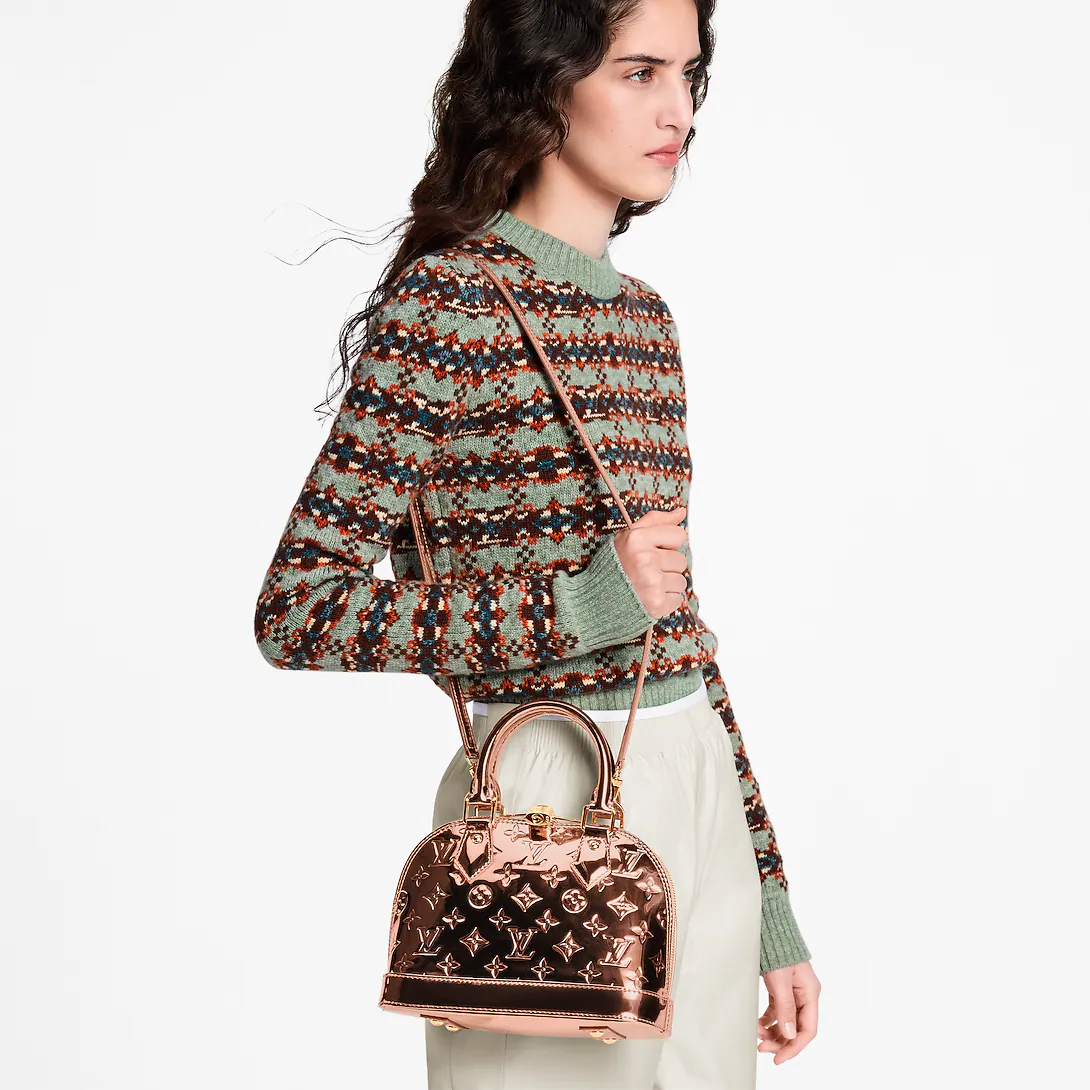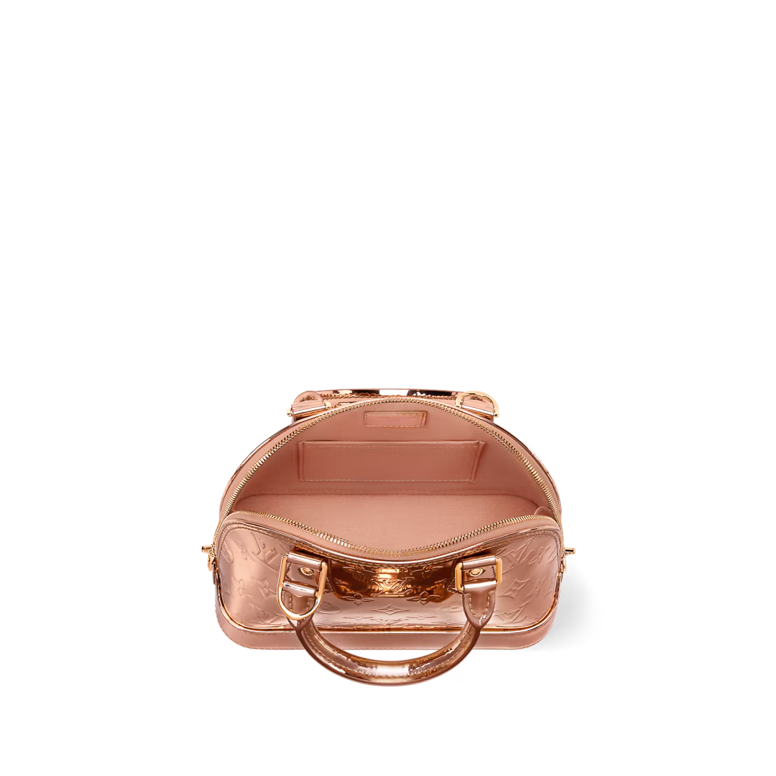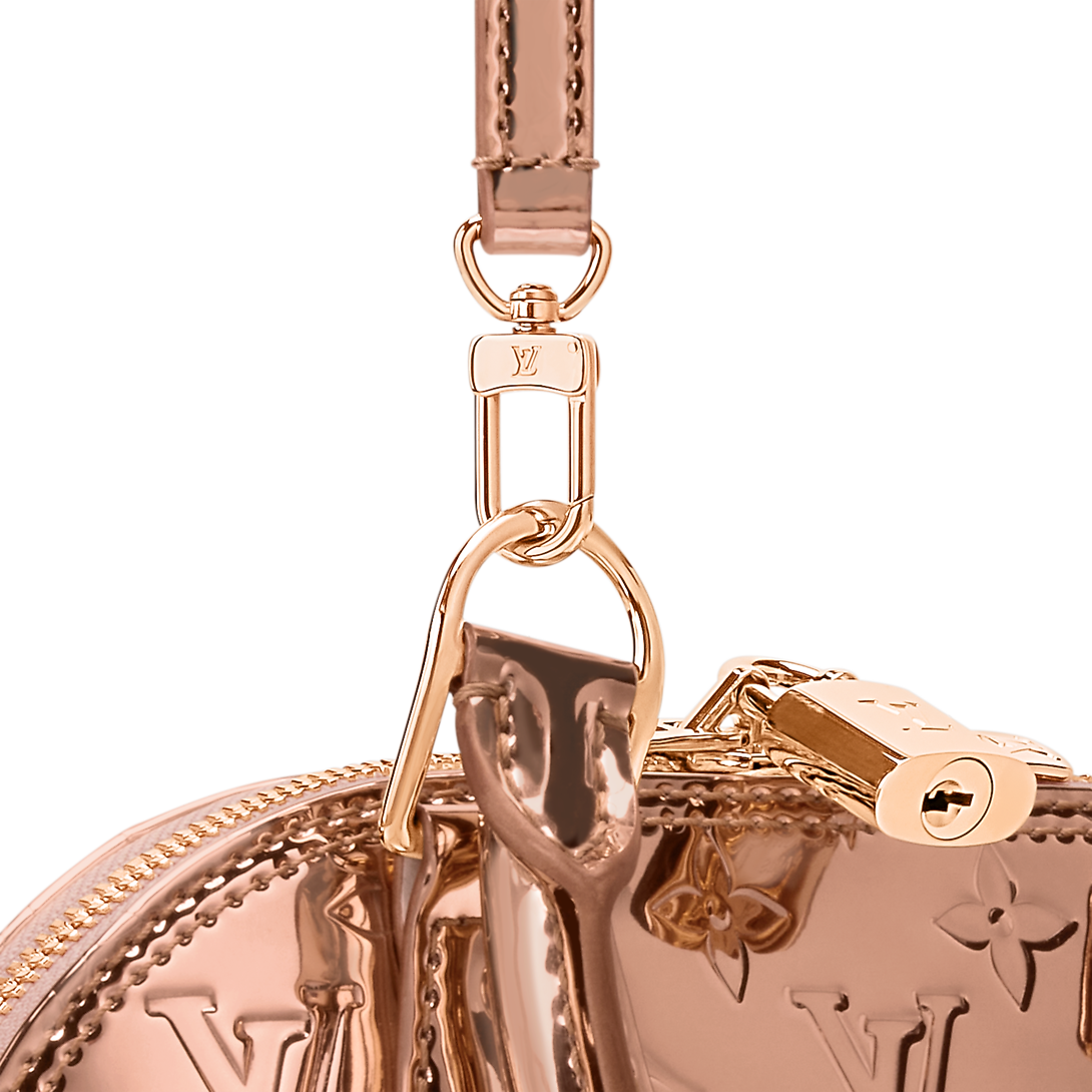 The LV Ski collection introduces technical details this season, and the Alma BB is a shining example with its light-reflecting Monogram Miroir finish. Bringing a retro-futuristic attitude to any look, it is crafted from weather-resistant canvas in a unique and exclusive Copper colorway with rose gold-toned hardware. It is adorned with a signature LV padlock, and includes a removable shoulder strap.