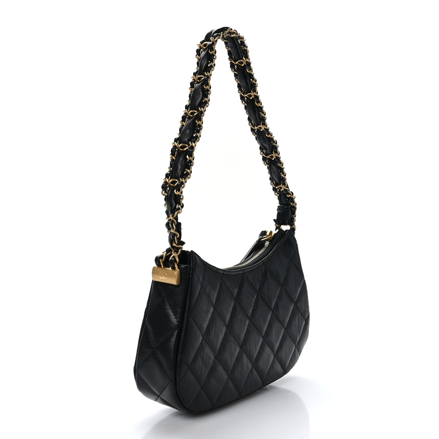 Aged Calfskin Quilted Chanel 19 Hobo Black