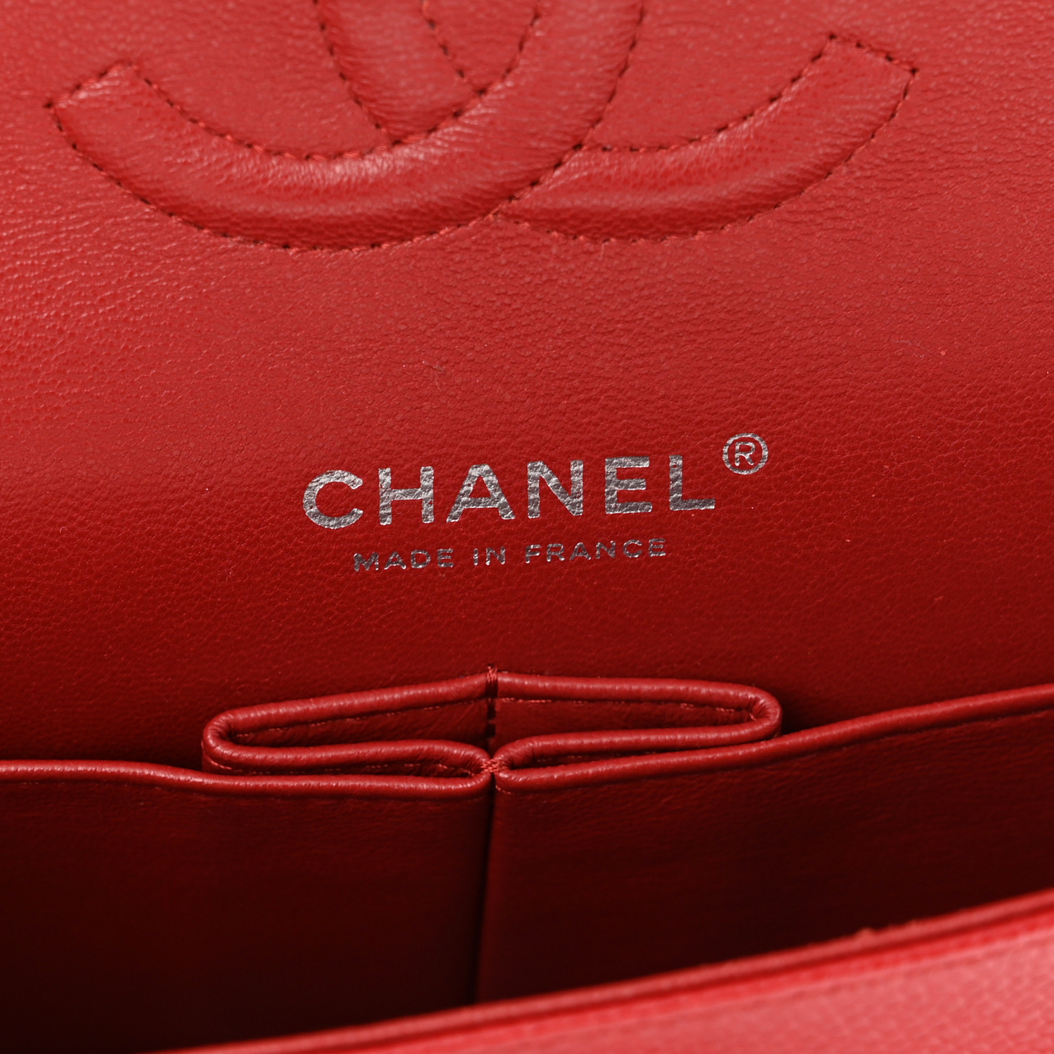 Chanel Caviar Quilted Medium Double Flap Red Silver Accessories
