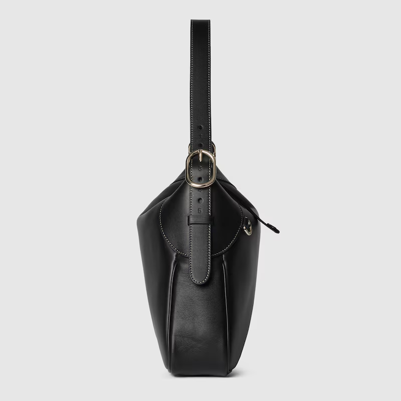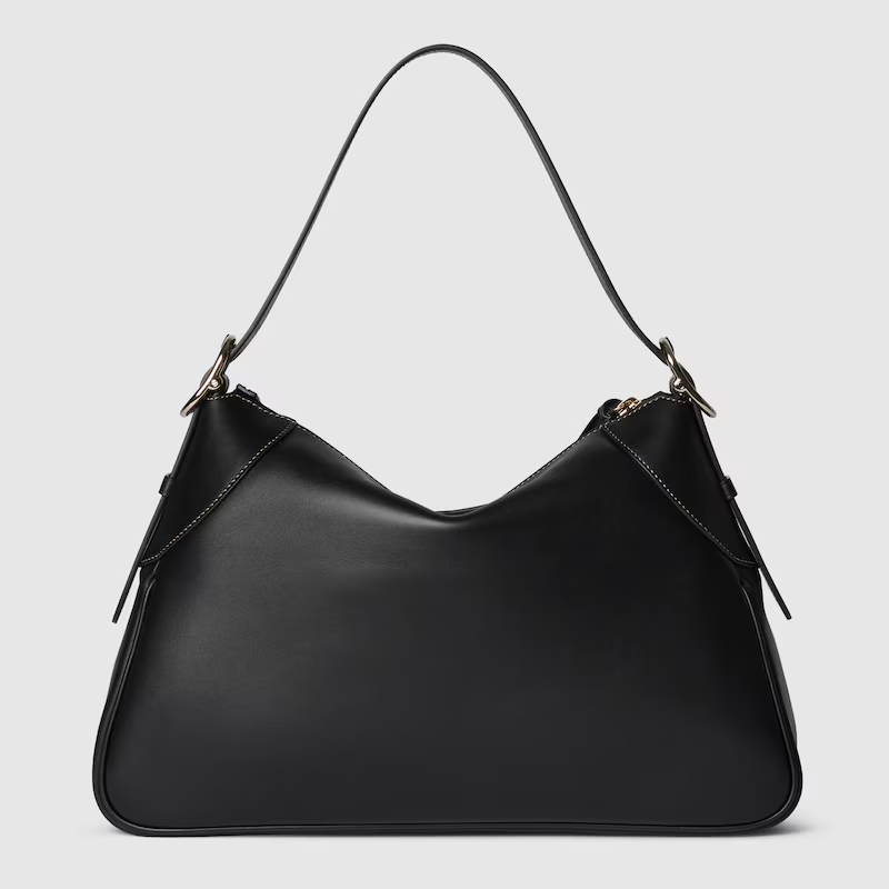 The new GG Emblem collection reinterprets the House’s history of elegance and craftsmanship. This large shoulder bag features numbered notches on the adjustable shoulder strap, inspired by the equestrian world.