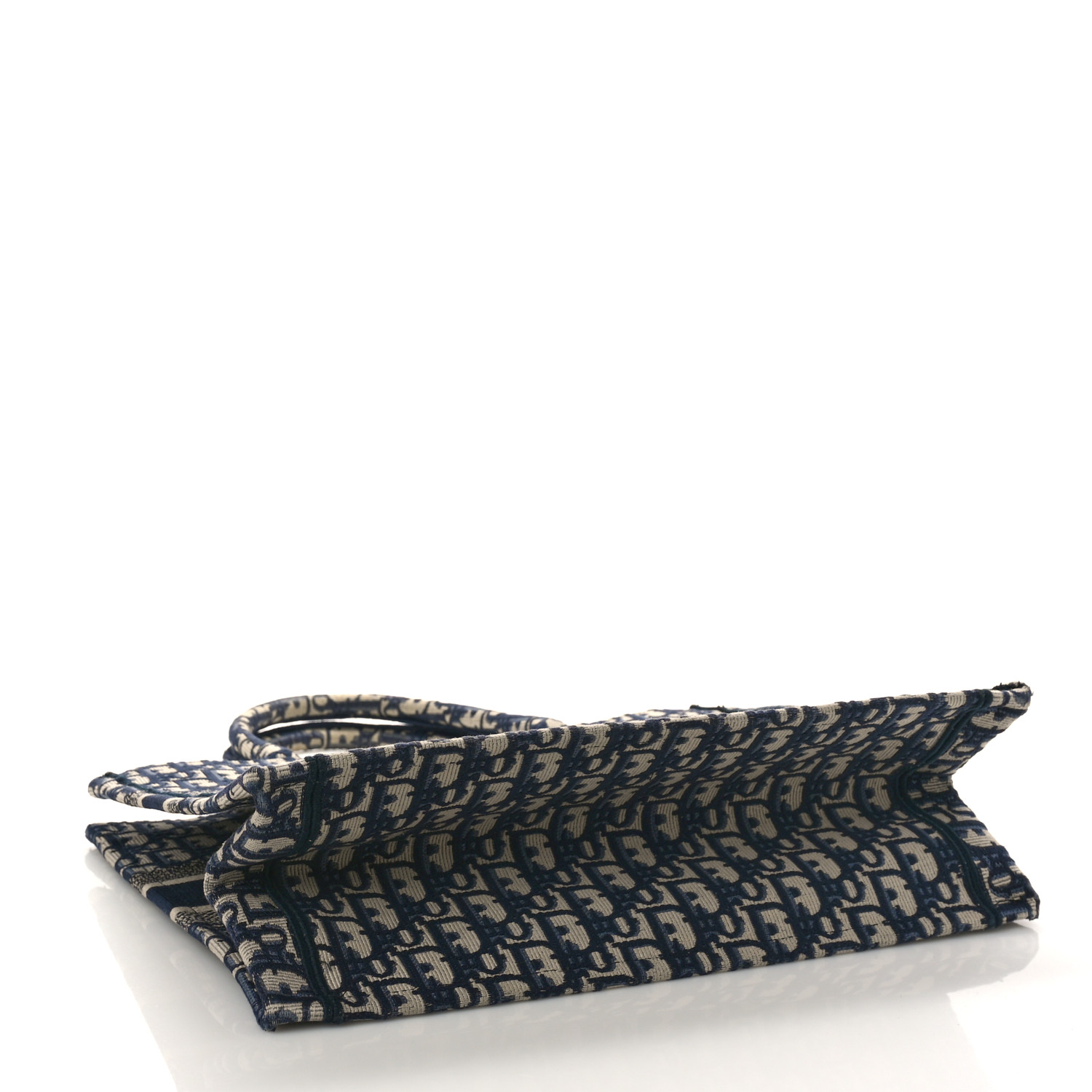 This is an authentic CHRISTIAN DIOR Oblique Medium Book Tote Blue Multicolor. This lovely tote is crafted of classic oblique print canvas in navy and beige. The bag features rolled canvas top handles and a CHRISTIAN DIOR logo embroidered on the front. The top is open to a spacious fabric interior.