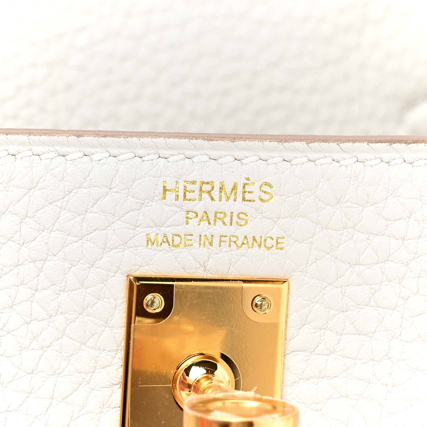 This is an authentic HERMES Togo Kelly Retourne 25 in Gris Pale. This chic and iconic handbag is expertly handcrafted of grained calfskin leather in light grey. The bag features rolled leather top handles, a short front flap with a strap closure with gold hardware including a padlock and an optional shoulder strap. The top flap opens to a matching goatskin leather interior with zipper and patch pockets.