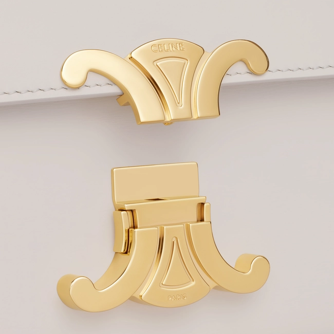 CHAIN SHOULDER BAG TRIOMPHE IN SHINY CALFSKIN CHALK