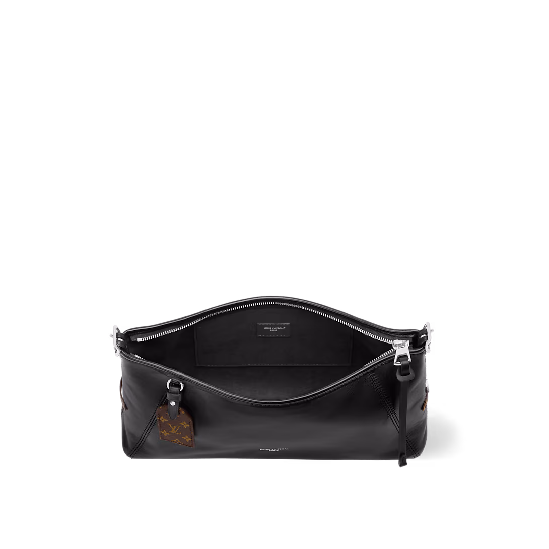 The LV Vibe collection presents this Carryall East West, which artfully blends heritage details with a contemporary silhouette. It is made from supple lamb leather with signature Monogram trims, including a name tag that pays tribute to the House’s archival trunks. Sized to fit everyday essentials, it has a removable strap and can be worn crossbody, over one shoulder or carried by hand.