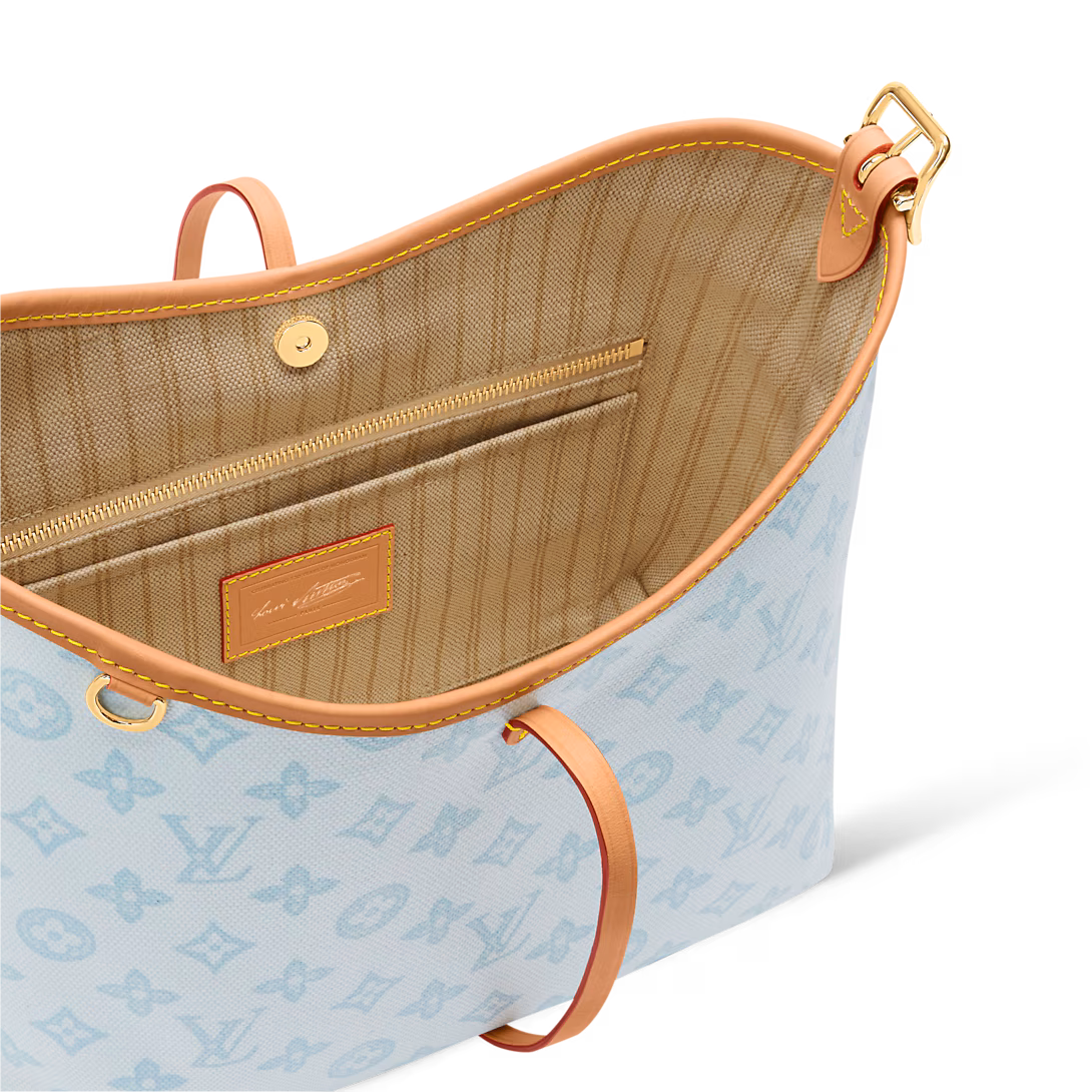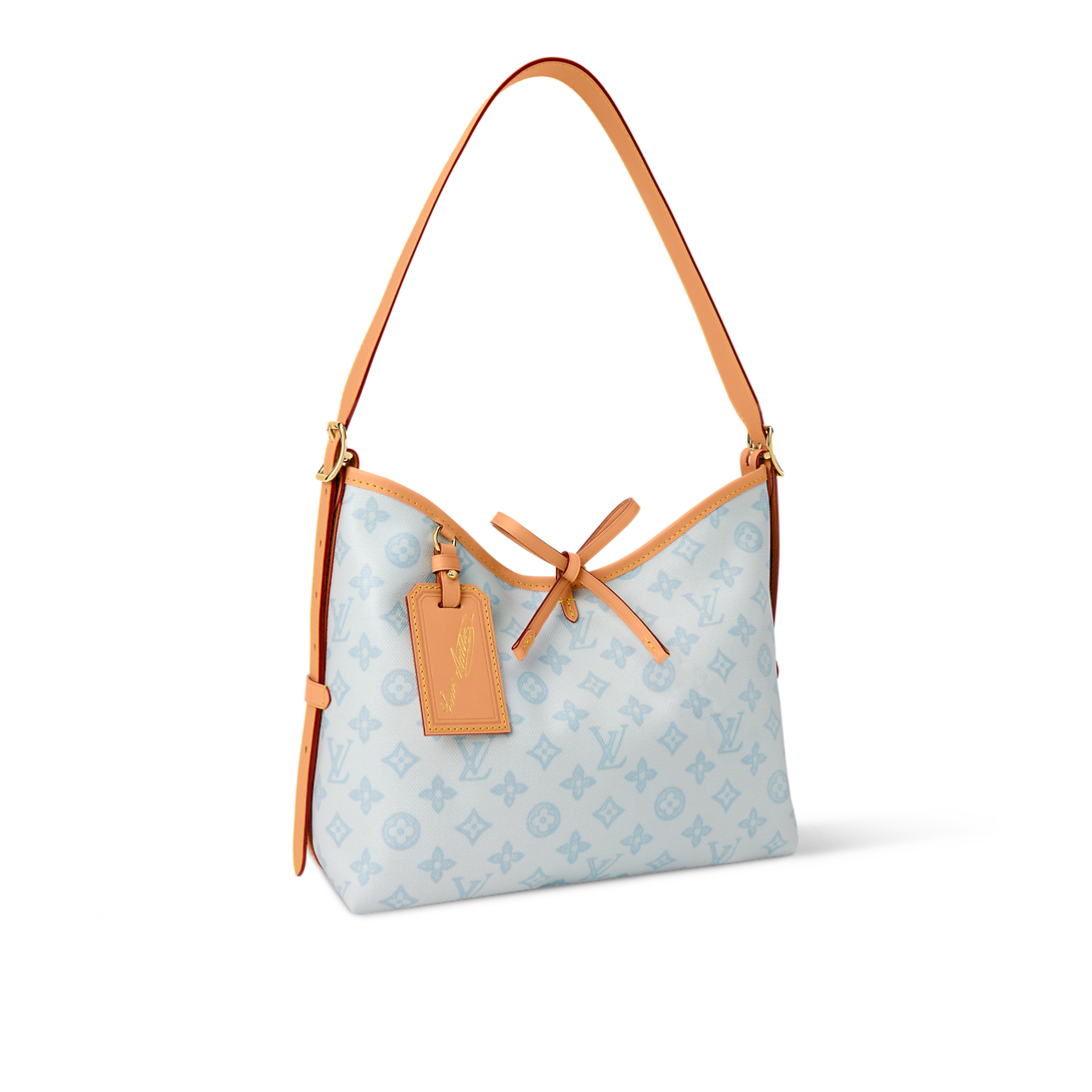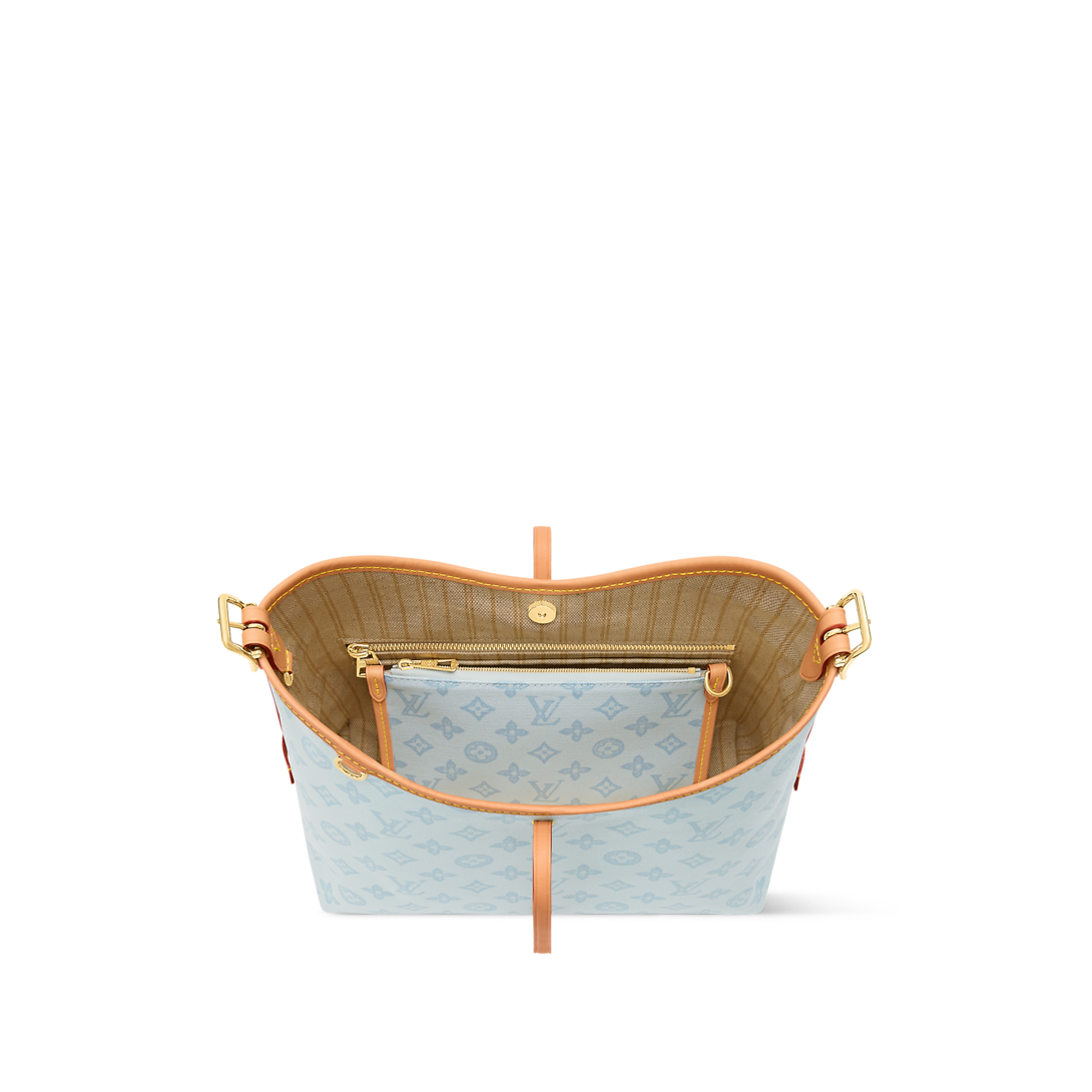 Offered in a joyful Monogram Origine Bleu Courrier palette, this CarryAll PM honors the 130th anniversary of the Louis Vuitton Monogram. Crafted from Monogram Origine canvas, a vintage-inspired update on the original pattern, it is trimmed with smooth cowhide and accented with an exclusive celebratory address tag. The versatile design fits a tablet and comes with a removable zipped pouch for smaller items.