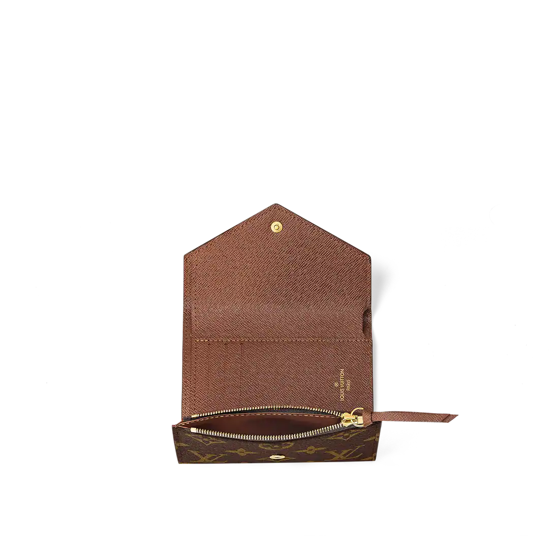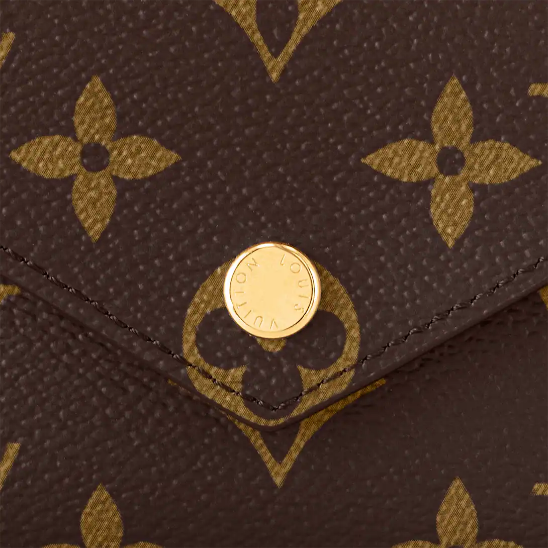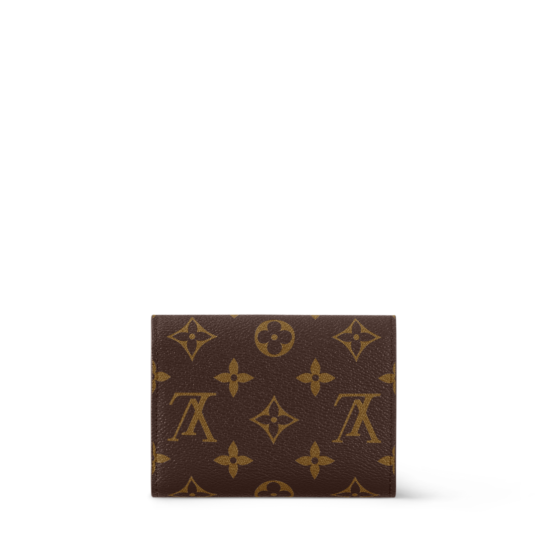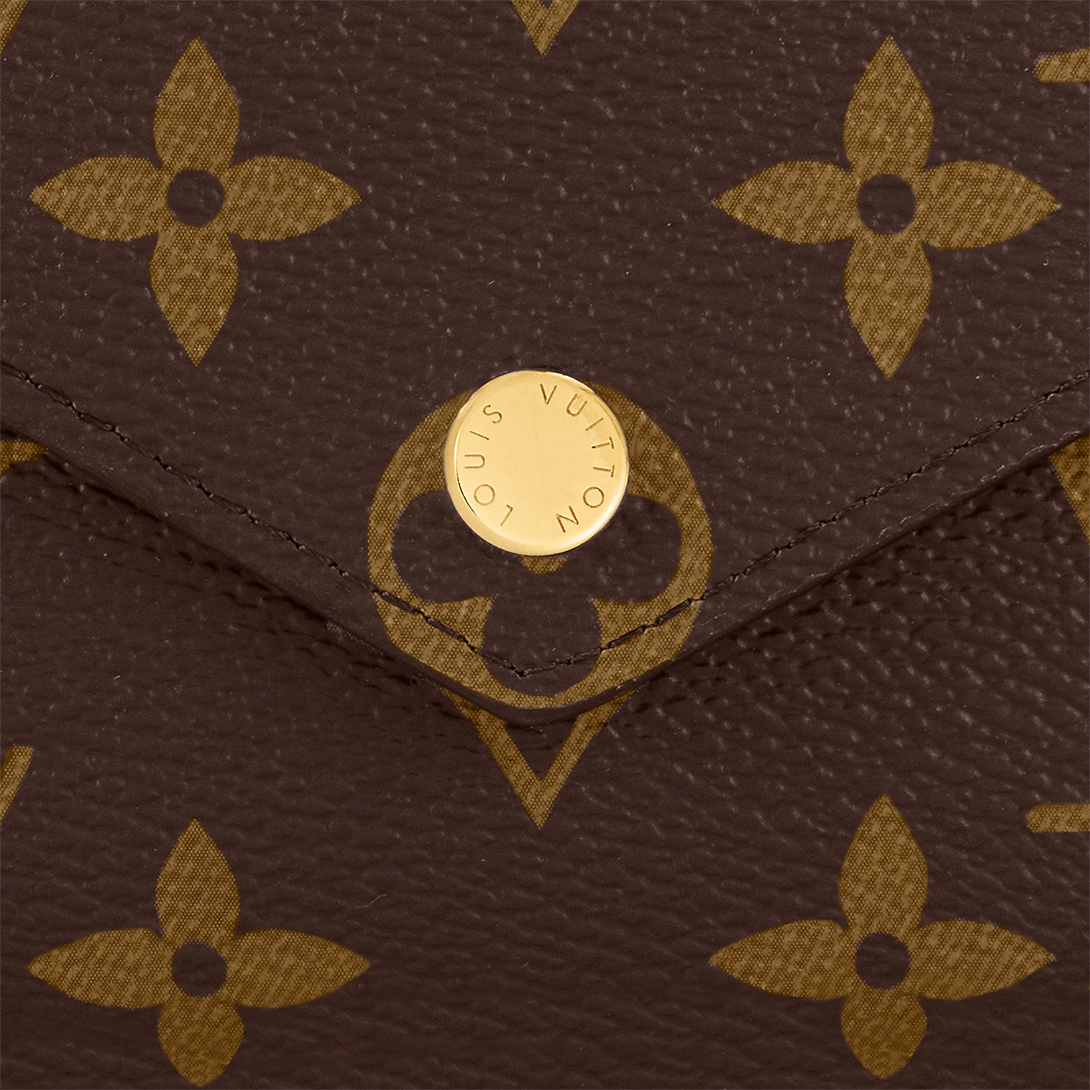 The compact Victorine wallet in Monogram canvas combines femininity and functionality. It opens out to reveal many practical features, including card slots and pockets for bills and coins. Its envelope-style flap is sealed with a press-stud.