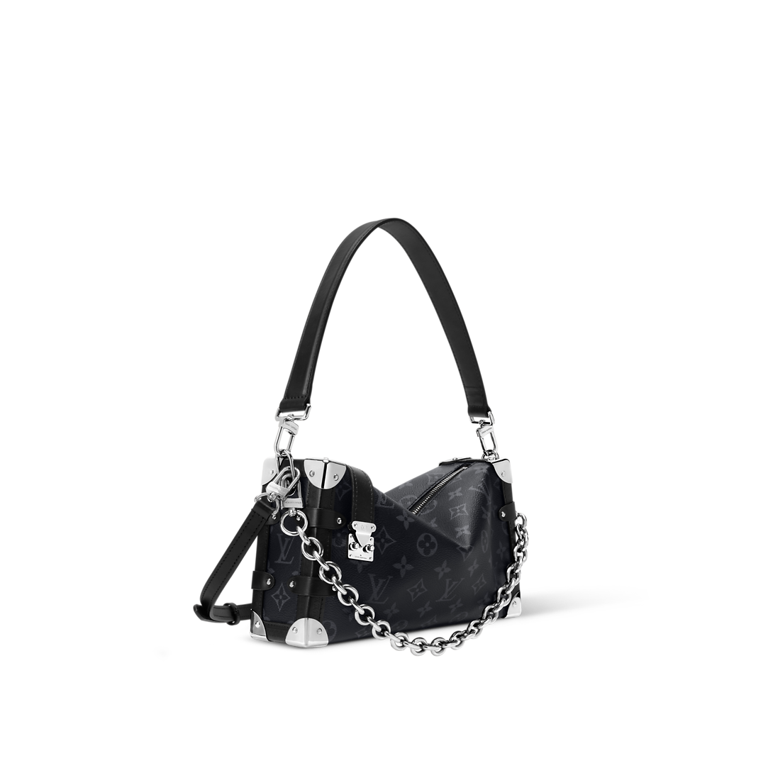 The Side Trunk family introduces this East West edition, which is offered in the House’s Monogram Eclipse canvas. A spacious slouchy everyday style, embellished with a signature S-lock, iconic trunk corners and a matching silver-toned chain. The versatile design can be carried by hand or worn cross-body by attaching the longer strap.