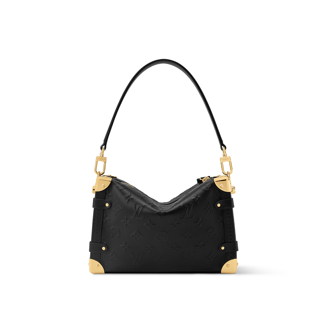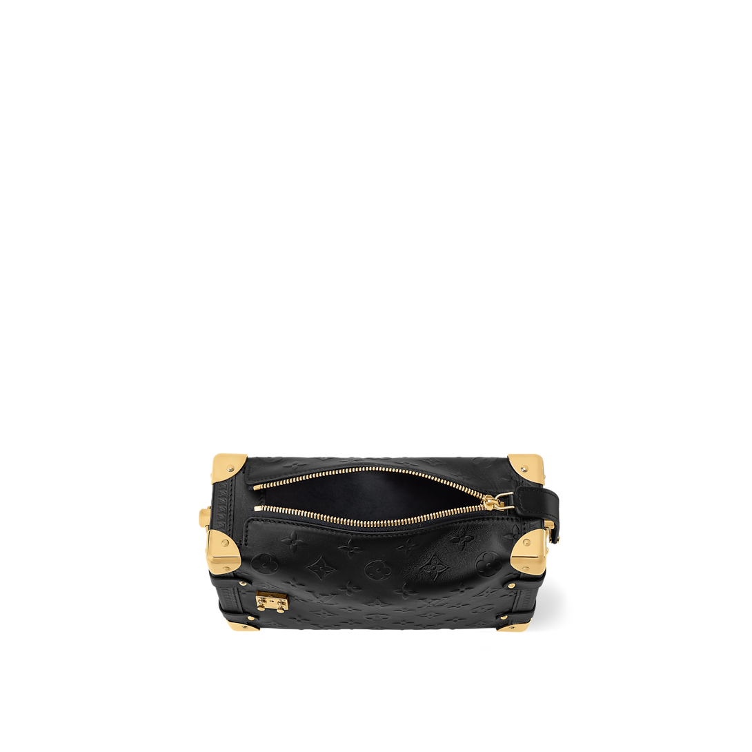 Creative Director Nicolas Ghesquière pays tribute to the House’s iconic luggage-making heritage with this Side Trunk MM. It is crafted from cowhide in a classic shade of Black, elevated with a signature S-lock and metallic corners. A sleek day-to-night style, it can be worn cross-body, over the shoulder or carried by hand.